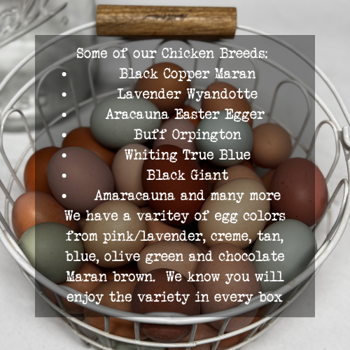****IF THIS IS AN ORDER FOR YOUR EGG SWAP BOX PLEASE SELECT THE “CHICKEN EGG SWAP BOX- DOZEN” TO SAVE A DOLLAR ON YOUR BOX. We will not be able to refund the $1.00 after purchase is made or at the time of pick up.***